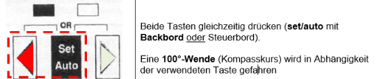 Dazu wird die Set/Auto-Taste gleichzeitig mit der Backbord- oder Steuerbordtaste gedrückt: