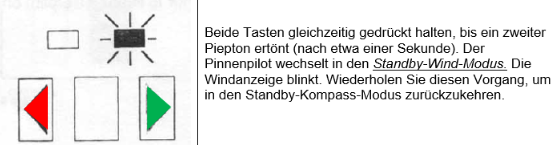 In diesem Zustand kann die Pinne über die Backbord- und Steuerbordtasten manuell bewegt werden, ohne dass der Pinnenpilot einen Kurs hält.